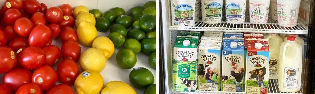 - ڈیری – نامیاتی دودھ، انڈے، اور مقامی پروڈیوسروں سے ڈیری جیسے چھاچھ، کیفیر، دہی، پنیر،